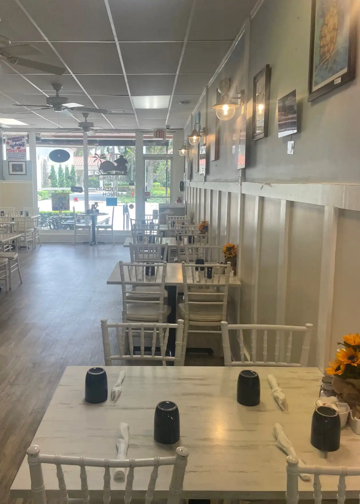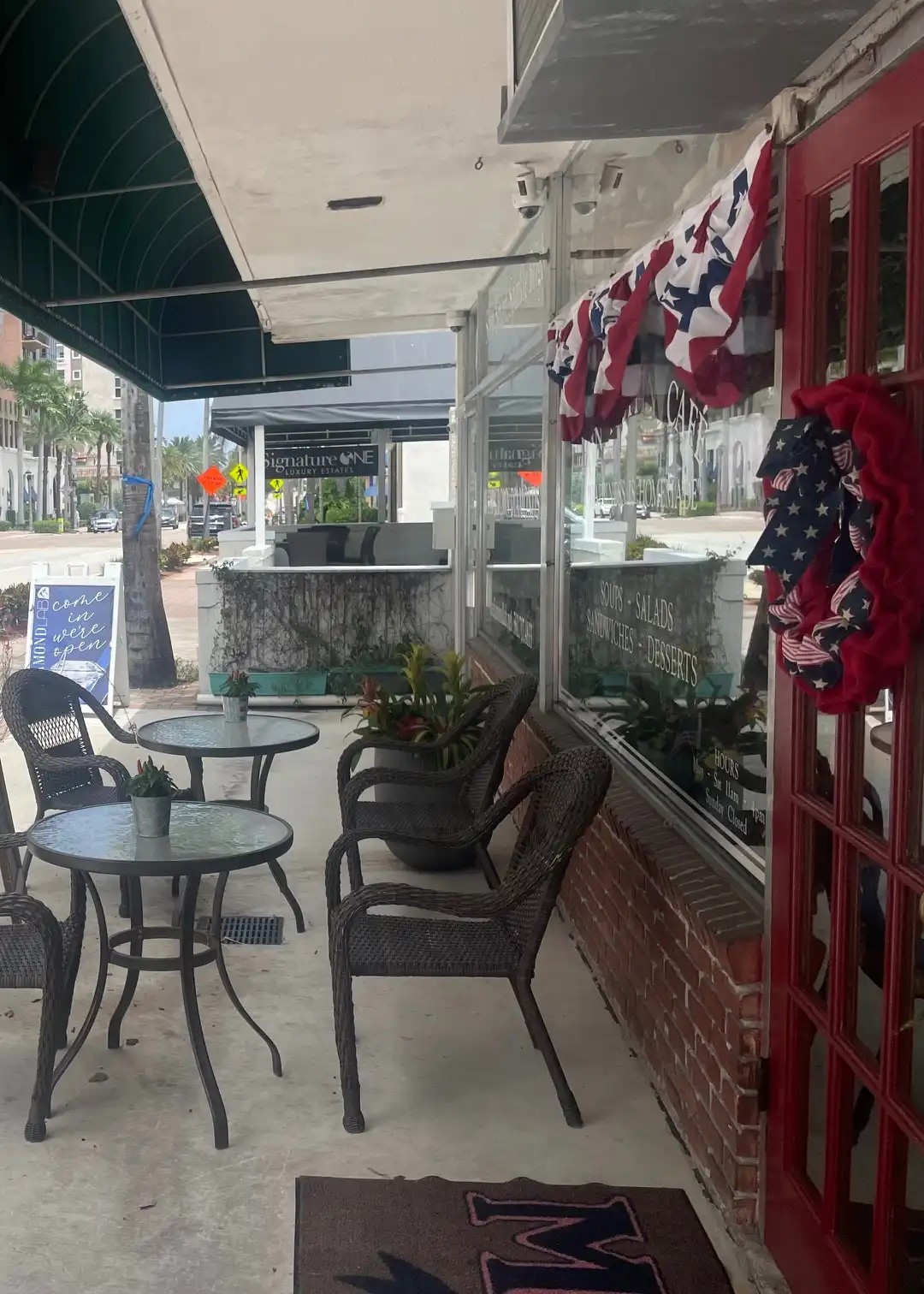 Tin Muffin Cafe is a quaint yet beautiful cafe known for its groundbreaking specials and homemade desserts. With both indoor and outdoor seating, it makes for a perfect brunch spot nestled between Mizner Park and Royal Palm Plaza. Their chicken options, sandwiches, soups, and desserts all give fame to its name, and it’s the type of place you try once and wish you had discovered sooner. The indoor decor is charming Americana, giving it a homey but comforting feel. In addition, everyone is a fan of their patriotic and fun bathroom decor (pictured).